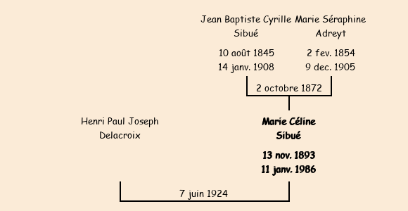 Père : Cyrille Jean Baptiste Sibué, fils de Apollinaire (cultivateur, 49 ans) | Parrain : Jean Baptiste Bouttaz |