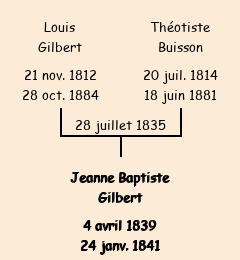 Mère : Théotiste Buisson (ménagère) | Marraine : Félicité Gilbert (ménagère) |