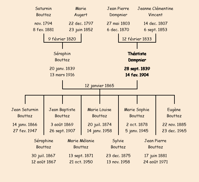 Mariée (25 ans) avec Séraphin Bouttaz (25 ans) le 12 janvier 1865 à Fontcouverte ![]() |