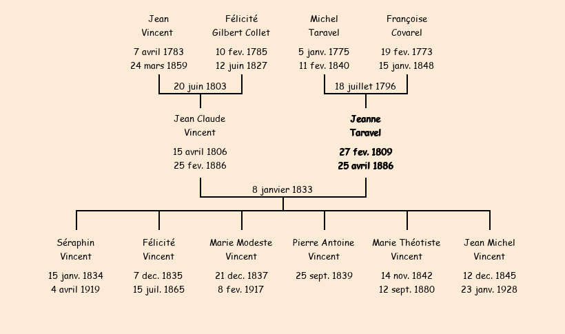Epoux : Jean Claude Vincent, fils de Jean et de feue Félicité Gilbert Collet |