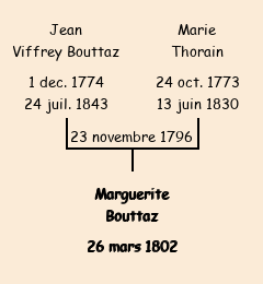 Père : Jean Bouttaz, fils de Pierre Antoine | Parrain : Jean Thorain (fils du dit Louis, frère de la marraine) |