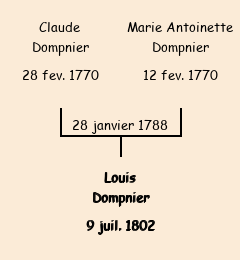 Père : Claude Dompnier, fils de Pierre Antoine | Parrain : Louis Miquet (fils de Pierre décédé) |