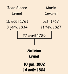 Père : Jean Pierre Crinel, fils de Antoine | Parrain : Antoine Buisson |