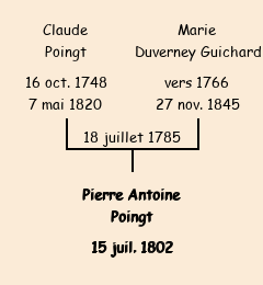 Père : Claude Poingt, fils de Jean | Parrain : Pierrre Antoine Taravel (fils de Louis décédé) |