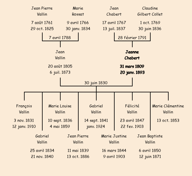 Epoux : Jean Pierre Vallin, fils de feu Jean Pierre et de Marie Rossat |