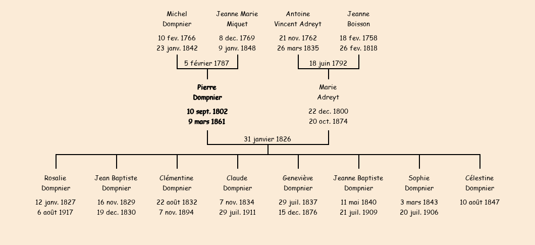 Epoux : Pierre Dompnier, fils de Michel et de Jeanne Marie Miquet |