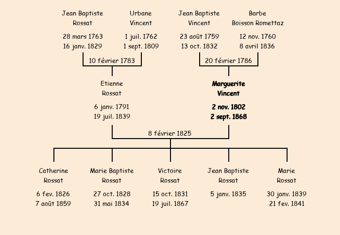 Epouse : Marguerite Vincent, fille de Jean Baptiste et de Barbe Romettaz |