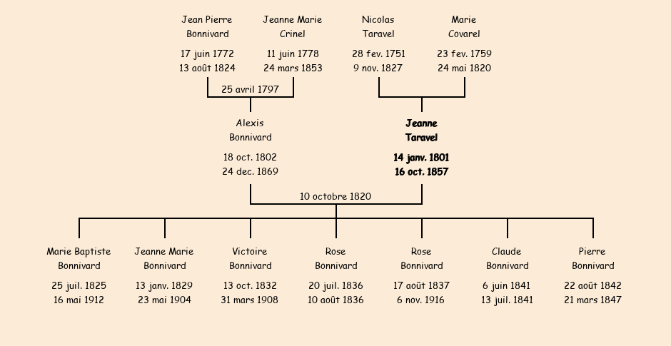 Epoux : Alexis Bonnivard, fils de Jean Pierre et de Jeanne Marie Crinel |