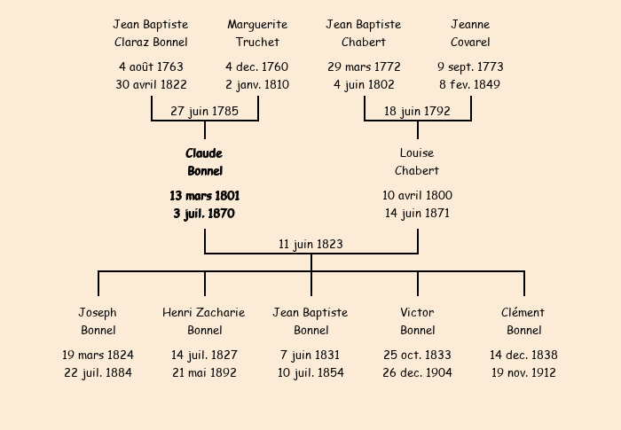 Epoux : Claude Bonnel, fils de feu Jean Baptiste et de Marguerite Truchet |