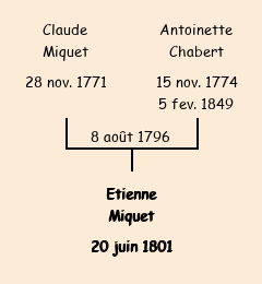 Père : Claude Miquet, fils de Louis | Parrain : Saturnin Miquet (fils d' un autre Claude Miquet) |