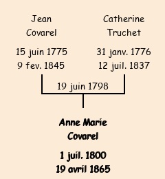 Père : Jean Covarel, fils de Gaspard | Parrain : Louis Covarel (fils de Joseph décédé) |