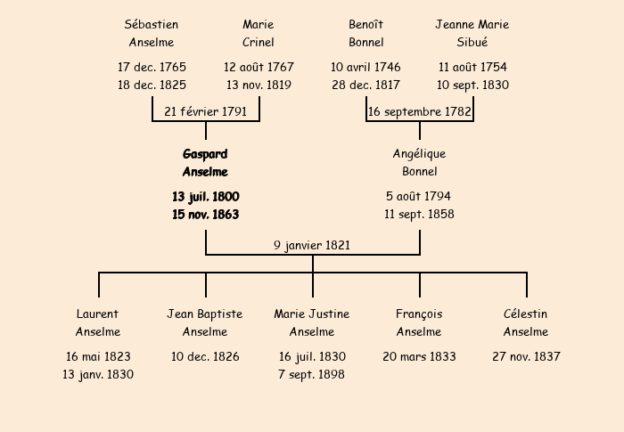 Père : Sébastien Anselme, fils de Gaspard | Parrain : Gaspard Anselme (grand-père paternel) |