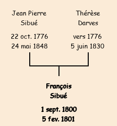 Père : Jean Pierre Sibué, fils de Jean Baptiste | Parrain : François Sibué (fils de Jean Baptiste décédé) |