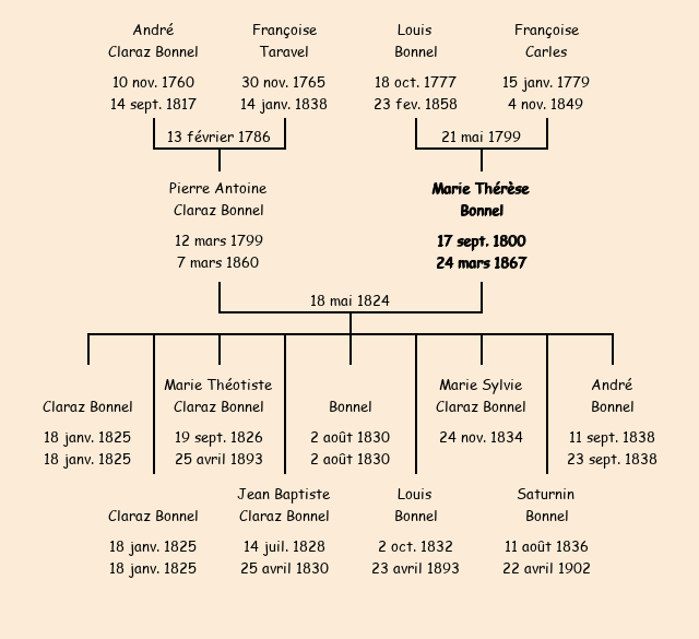 Epouse : Marie Thérèse Bonnel, fille de Louis et de Françoise Buisson Carles |
