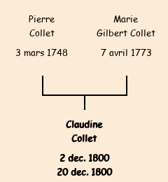 Mère : Marie Gilbert Collet, fille de Louis | Marraine : Claudine Gilbert Collet (fille du dit Louis) |