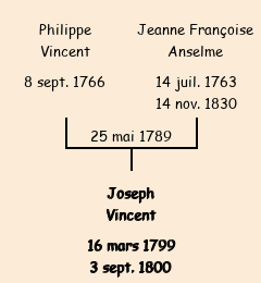 Père : Philippe Vincent, fils de Jean Baptiste | Parrain : Gaspard Anselme (grand-père maternel) |