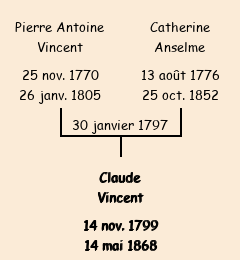 Père : Pierre Antoine Vincent, fils de Claude | Parrain : Claude Vincent (grand-père paternel) |
