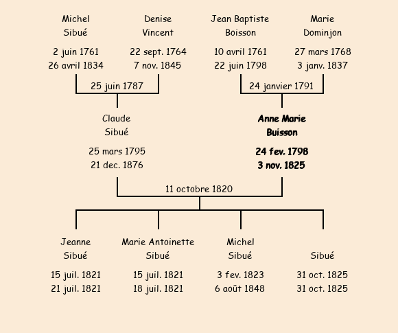 Epouse : Anne Marie Buisson, fille de feu Jean Baptiste et de Marie Dominjon |