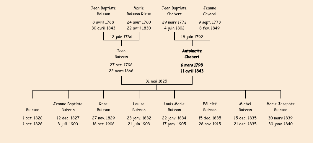 Epoux : Jean Buisson, fils de Jean Baptiste et de Marie Buisson |