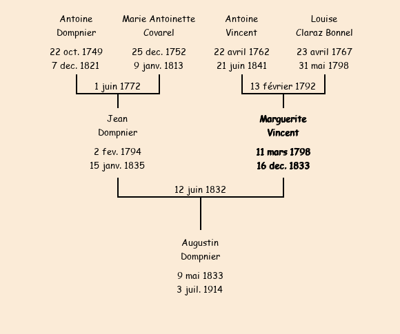 Epouse : Marguerite Vincent, fille de Antoine et de feue Louise Bonnel |