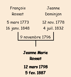 Père : François Rossat, fils de Jean | Parrain : Jean Claude Rossat (fils du dit Jean, frère de la marraine) |