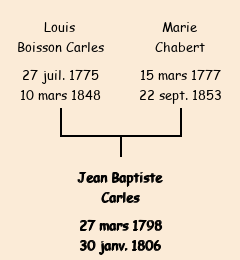 Père : Louis Carles, fils de Jean Baptiste | Parrain : Jean Baptiste Carles (grand-père paternel) |