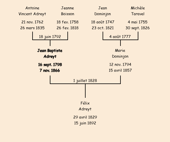 Père : Antoine Adreyt, fils de Jean Baptiste | Parrain : Antoine Dompnier (fils de Claude, décédé) |
