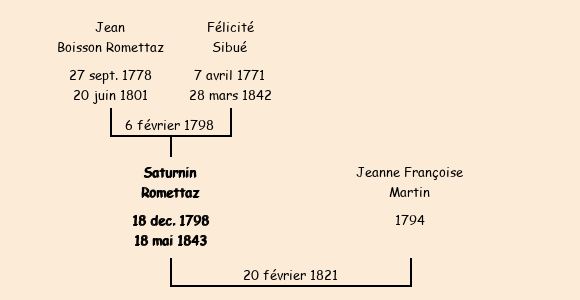 Père : Jean Romettaz, fils de Urbain | Parrain : Saturnin Romettaz (fils de Louis) |