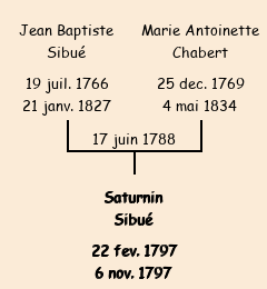 Père : Jean Baptiste Sibué, fils de Saturnin | Parrain : Saturnin Sibué |