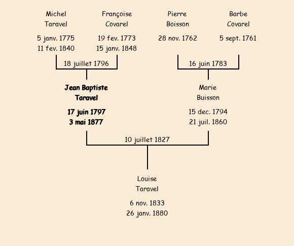Père : Michel Taravel, fils de Jean | Parrain : Jean Baptiste Taravel (fils du dit Jean, frère de la marraine) |