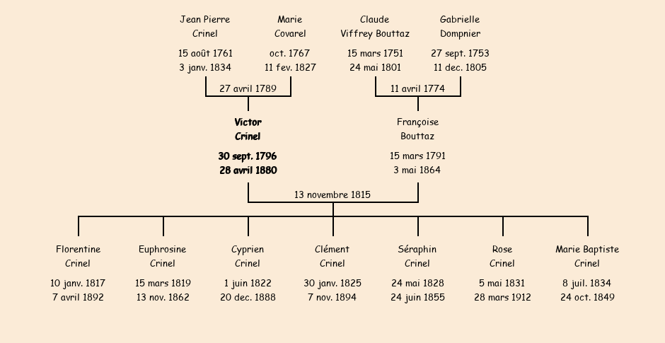 Epoux : Victor Crinel, fils de Jean Pierre et de Marie Covarel |