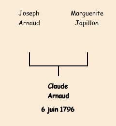Père : Joseph Arnaud (de Saint Jean de Maurienne) | Parrain : Jean Manicy (originaire de Saint Barthélémy en Ardèche et résidant dans le département du Mont Blanc, remplacé au baptême par Jean Charles Blachier) |