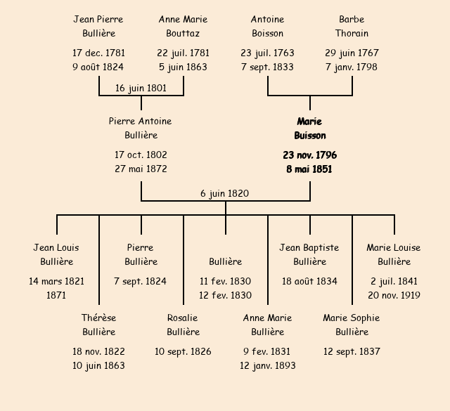 Epoux : Pierre Antoine Bullière, fils de Jean Pierre et de Anne Marie Bouttaz |
