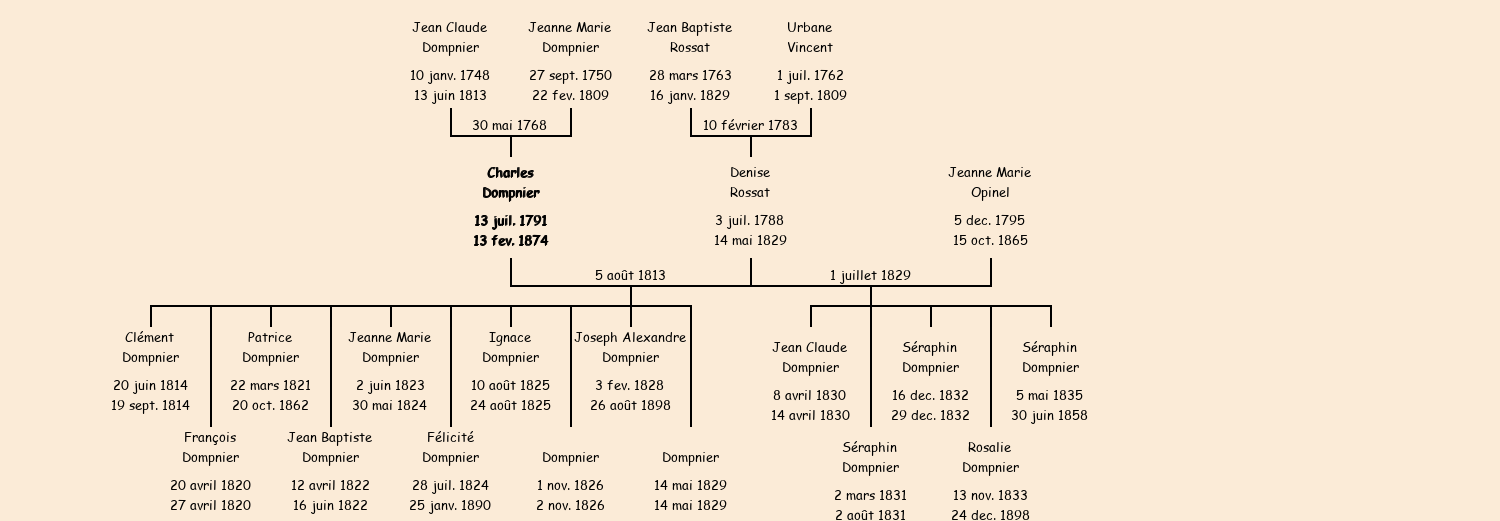 Epoux : Charles Dompnier, fils de feu Jean Claude et de feue Jeanne Marie Dompnier |