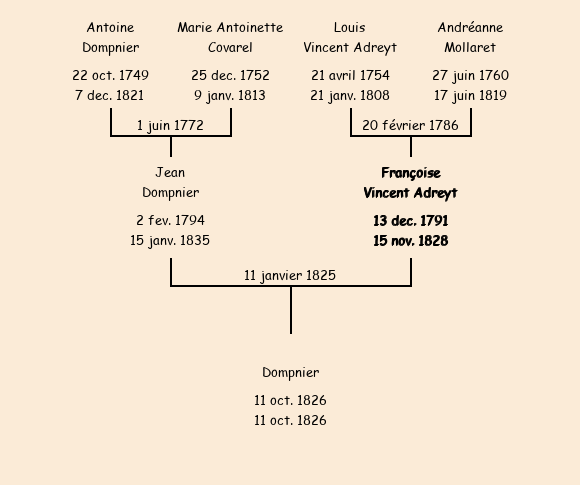 Epouse : Françoise Adreyt, fille de feu Louis et de feue Andréanne Mollaret |