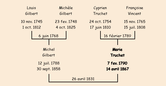 Epouse : Marie Truchet, fille de feu Jean Cyprien et de feue Françoise Vincent |