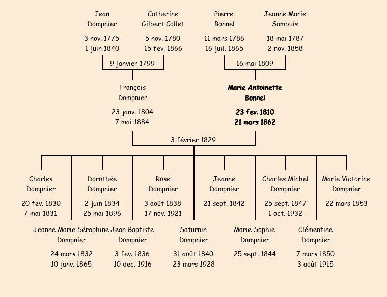 Epouse : Marie Antoinette Bonnel, fille de Pierre et de Jeanne Marie Sambuis |