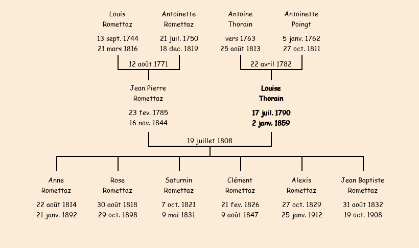 Epoux : Jean Pierre Romettaz, fils de Louis et de Antoinette Romettaz |