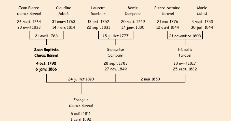 Epoux : Jean Baptiste Claraz Bonnel, fils de Jean Pierre et de Claudine Sibué |
