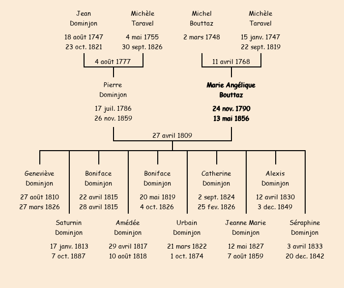 Epouse : Marie Angélique Bouttaz, fille de feu Michel et de Michèle Taravel |