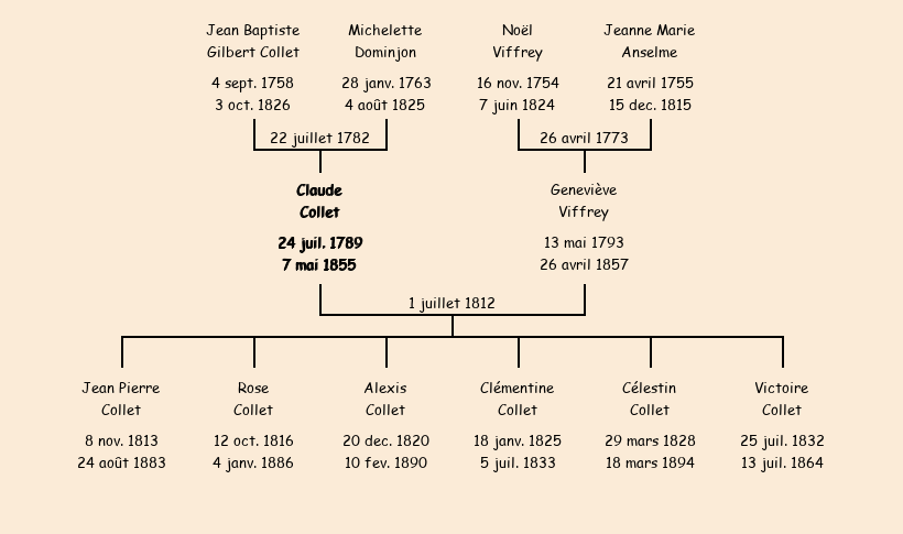 Epoux : Claude Collet, fils de Jean Baptiste et de Michèle Dominjon |