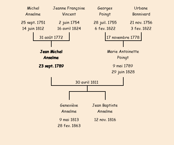 Epoux : Jean Michel Anselme, fils de Michel et de Jeanne Françoise Vincent |