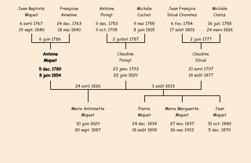 Epoux : Antoine Miquet, fils de Jean Baptiste et de Françoise Anselme |
