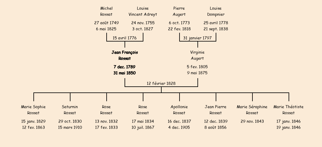Epouse : Virginie Augert, fille de feu Pierre et de Louise Dompnier |