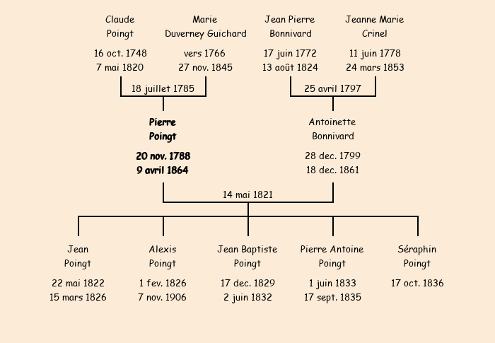 Epoux : Pierre Poingt, fils de feu Claude et de Marie Duverney Guichard |