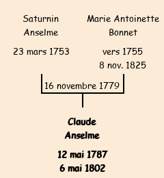 Mère : Marie Antoinette Bonnet | Marraine : Jeanne Anselme |