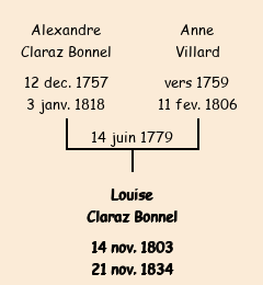Père : Alexandre Claraz Bonnel, fils de Michel | Parrain : André Claraz Bonnel (fils du dit Michel) |