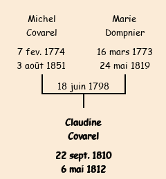 Mère : Marie Dompnier, fille de Pierre Antoine | Marraine : Claudine Covarel (fille de Jean Baptiste) |