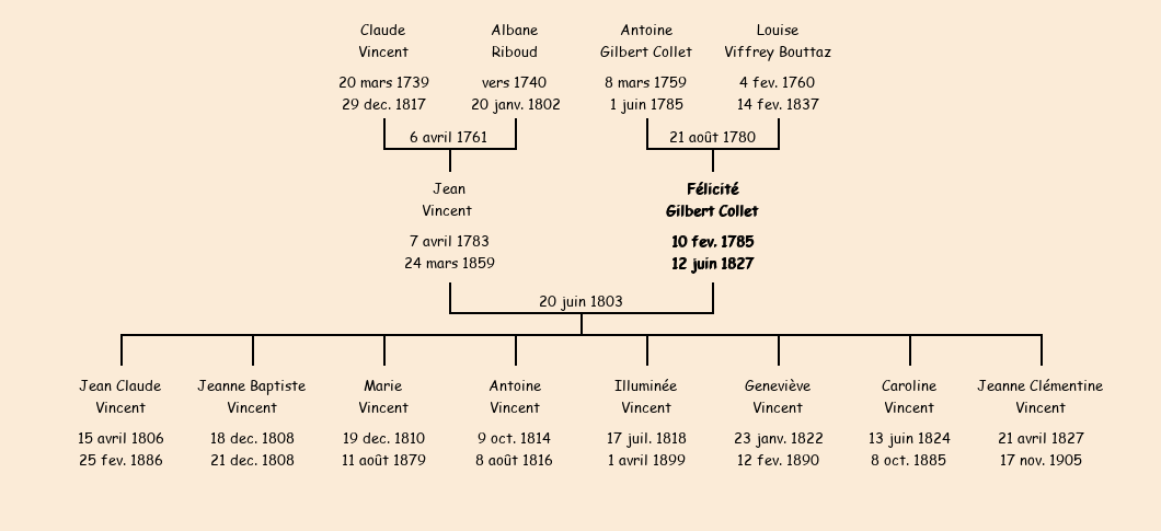 Epouse : Félicité Collet, fille de feu Antoine et de Louise Bouttaz |