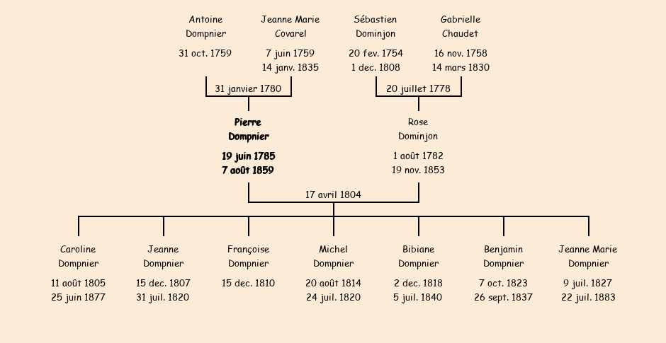 Epoux : Pierre Dompnier, fils de feu Pierre Antoine et de Jeanne Marie Covarel |